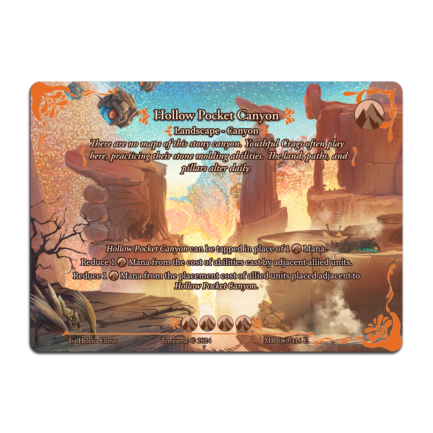 Landscape cards can be used to reduce the casting cost of abilities of adjacent allied units or the placement cost of units placed adjacent to them. Additionally, they can be tapped in the place of a mana card.